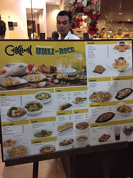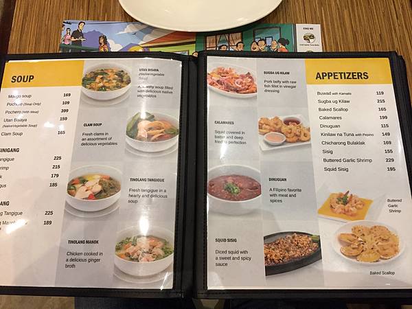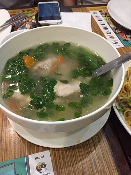 它有提供菲式湯品、開胃菜、麵飯跟其它當地料理
