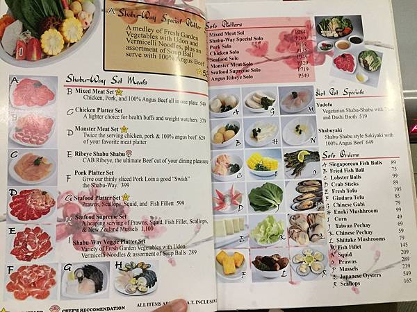 他有提供不同肉類的套餐, 就像在台灣吃火鍋那樣