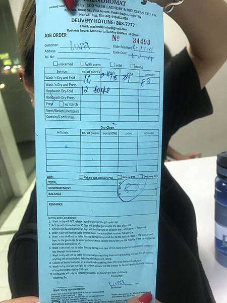 上面記錄你有幾件衣服然後何時可以領取