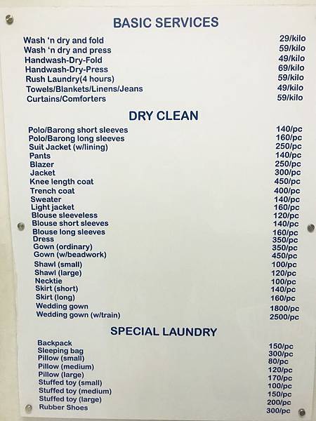 那帶大家看下一般洗衣的流程以及價目表